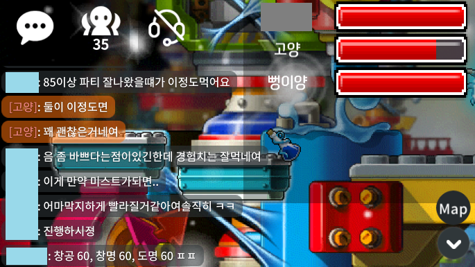 펫 HP 게이지 90%, 물약은 일본 맵에서 판매하는 키노코라면을 많이 준비해 주시기 바랍니다.