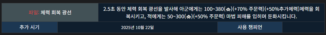 단, AP 계수보다는 체력 계수가 높은 편이라 AP 메이지보다는 CC기 많은 탱커에게 매우 잘 어울립니다.