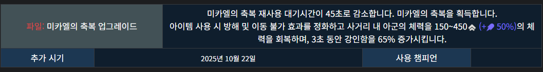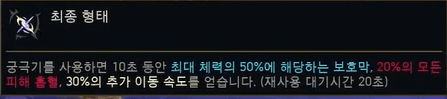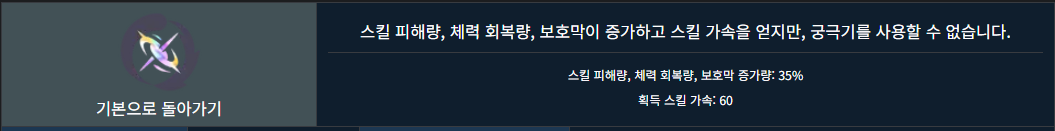 생각보다 체력 보호막 비율 상승분이 높기 때문에 힐이나 실드를 제공하는 서포터가 있는 경우 선택하면 매우 좋습니다.