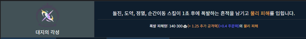 암살 추가딜로 뽑히는 폭딜이 엄청난 스킬이라 진이나 케이틀린 같은 한 방이 묵직한 챔피언에게도 잘 맞습니다.